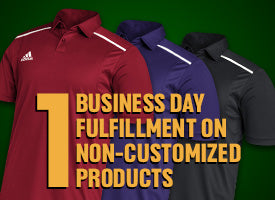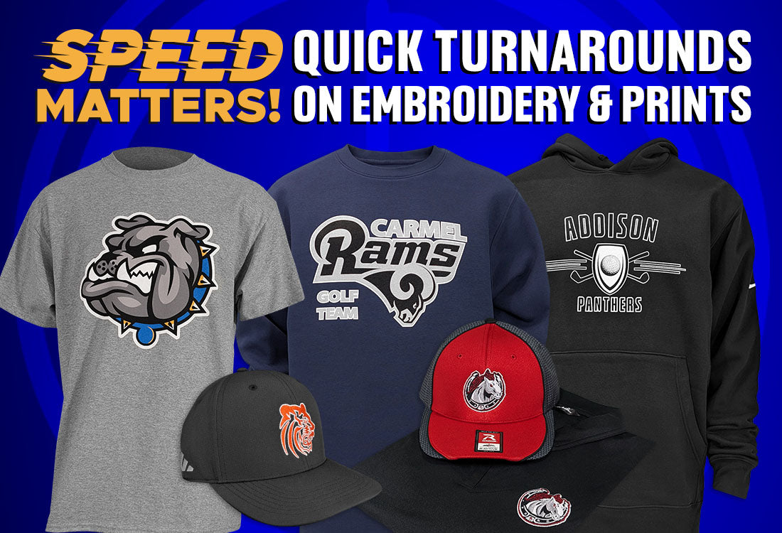 Our rapid embroidery & print services fulfill orders in about 3 - 10 business days, helping your team proudly represent its school colors as soon as possible.