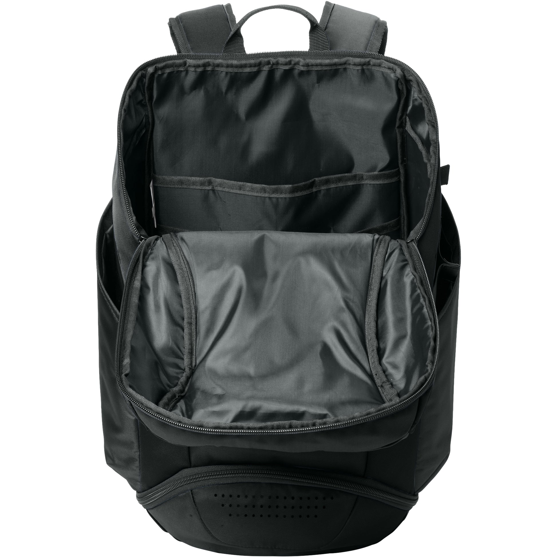 • Laptop compartment fits most 18″ laptops (16″h × 11″w)