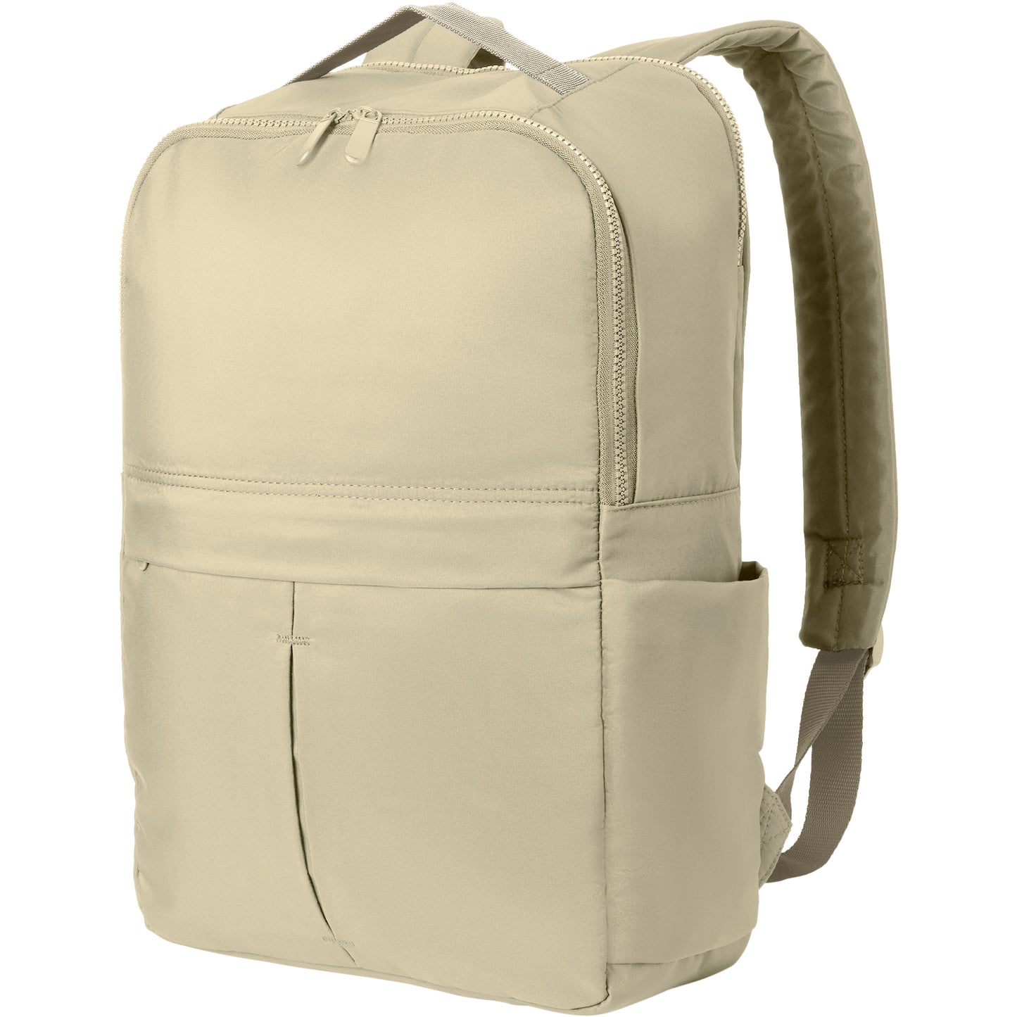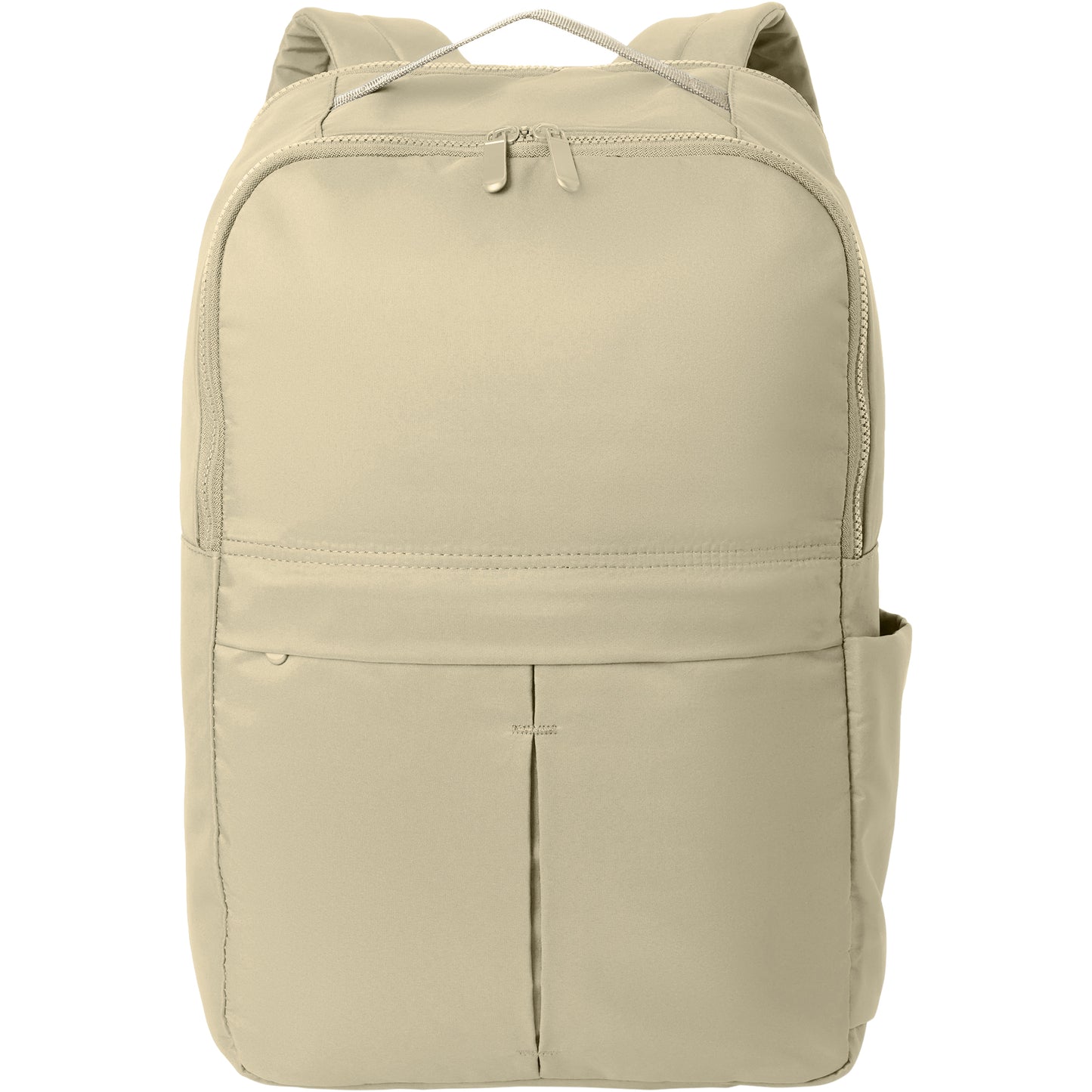 • Pleated front zipper pocket